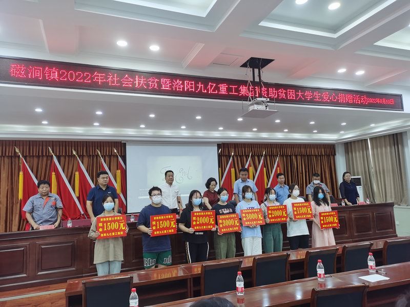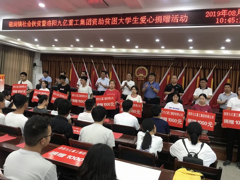 愛是與生俱來的,在血液里流動,在骨子里結(jié)晶,它源源不斷的由心而生,永不枯竭,只要人人都愿意奉獻一點愛,就如甘霖沐浴大地,人間處處盛開幸福之花! 為響應(yīng)洛陽市政府精準扶貧政策,洛陽九億重工集團有限公司及董事長王九茂積極參與捐資助學(xué)的慈善義舉活動,特做出如下決定:1、公司幫扶磁澗鎮(zhèn)2017年新招貧困大學(xué)生21名順利入學(xué),每人資助2000元,總計肆萬貳仟元整; 2、總經(jīng)理王九茂(縣政協(xié)委員)以個人名義資助磁澗鎮(zhèn)南窯村2017年新招大學(xué)生6名,總計12000元整; 我相信,在社會各界的大力支持和共同努力下,我們的“愛心助學(xué)”活動將會惠及到更多的同學(xué),為了夢想,刻苦讀書、報銷祖國,廣大同學(xué)也一定會在溫暖的社會大家庭里茁壯成長,必將成為國家建設(shè)的有用之才! 洛陽九億重工集團有限公司 董事長:王九茂